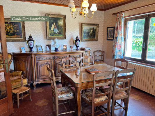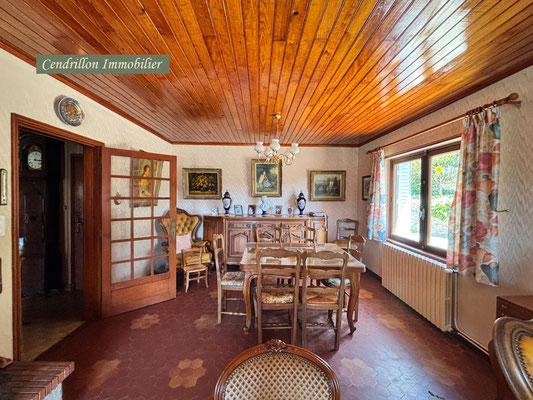 Salle à manger / salon : 7.5 x 3.8 = 29.2m2. Grande baie vitrée double vitrage huisseries aluminium donnant sur la terrasse. Poêle à bois insert.