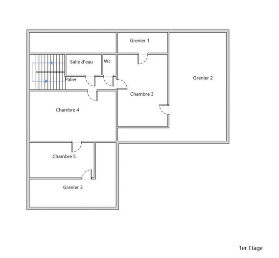 Chambre 4 : 5.5 x 2.8 = 16m2 avec grand velux, fenêtre et placard. En enfilade, espace grenier : 2.2 x 5.7 = 13.22m2.